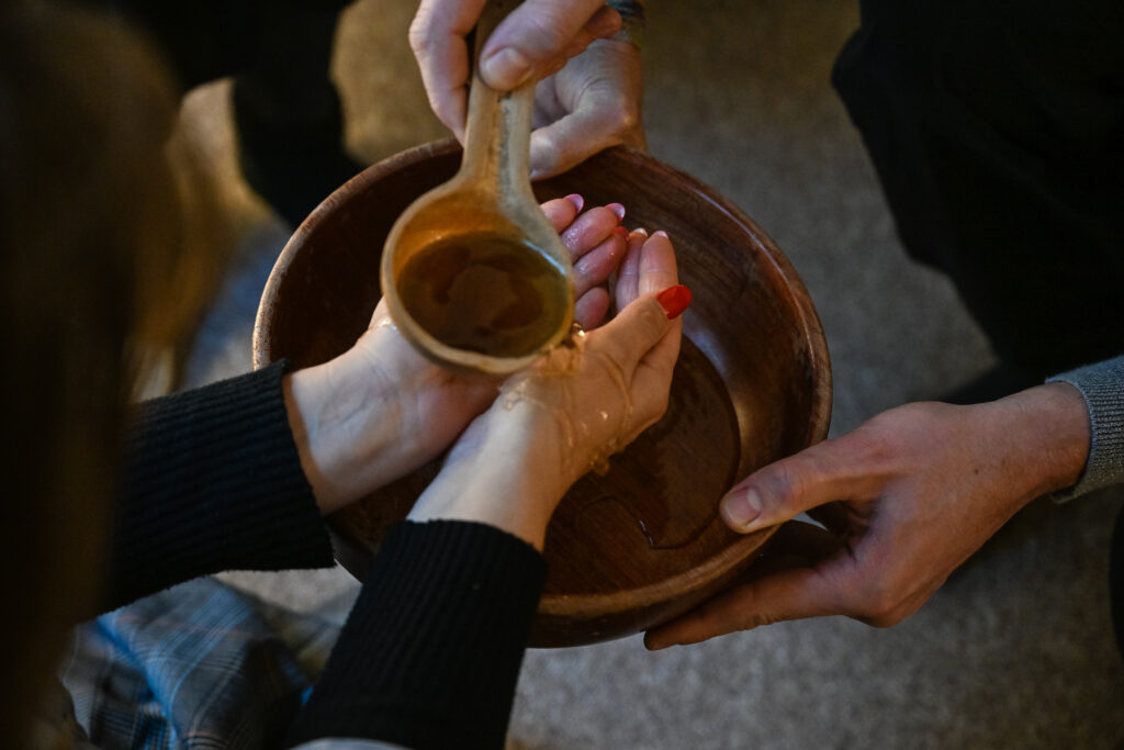 Au cours de sa résidence à Berlin, Julie Escoffier mène des recherches phoniques sur la colophane (résine de pin) et ce qu’elle nomme des sculptures d’offrandes conçues pour accueillir des libations. Elle s’inspire des pierres de sorcières – percées par l’action de l’eau, associées à des croyances protectrices – ainsi que d’objets symboliques récemment découverts. Cette recherche sur les pratiques rituelles l’amène à repenser l’idée d’offrande, non plus destinée à une divinité particulière, mais centrée sur les interactions entre l’humain et le non-humain à travers la matière. Dans ce cadre, elle crée de nouvelles formes en colophane, qui intègrent un langage visuel et sonore activé par le public lors de la restitution de sa résidence.