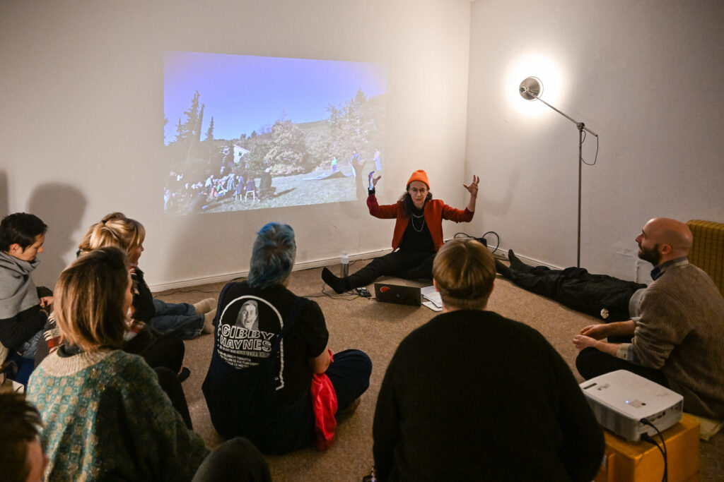 Les chercheur·euses Nadine Wanono et Côme Ledésert ont animé une conférence participative autour des gestes mineurs, interrogeant les contraintes encapacitantes et les formes d’intelligence improvisée qu’elles suscitent. L’artiste Gisèle Gonon a proposé une écoute collective de sa pièce Dissidences des Champs, suivie d’une discussion autour de ses recherches sur les vies queer en milieu rural menées en 2024. En clôture, nous avons projeté une vidéo réalisée par Lam Son Nguyen à KOMMET qui dévoilent les résultats des recherches conduites par les artistes en résidence à Montbrun-les-Bains (Drôme provençale) et à Berlin.